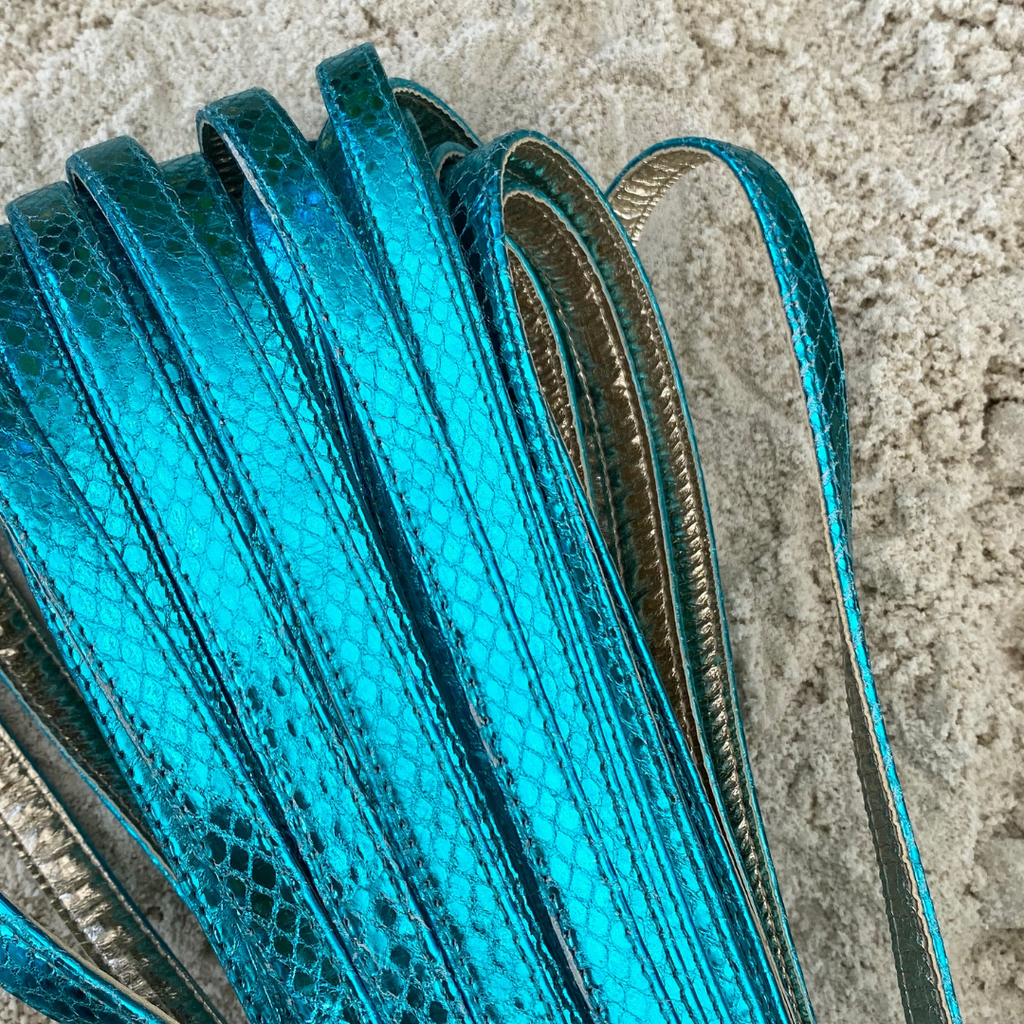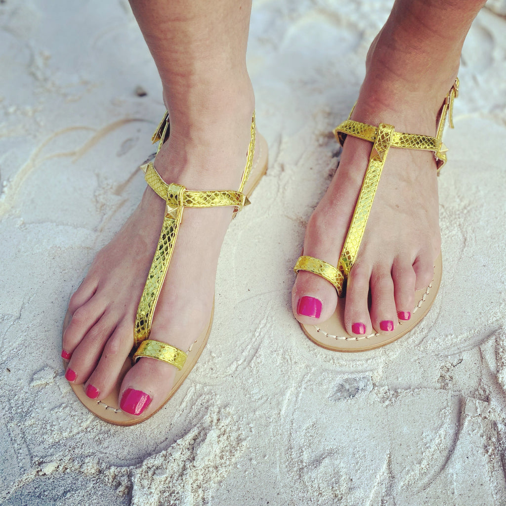 • Snake print metallic leather sandal, crafted and nailed by hand